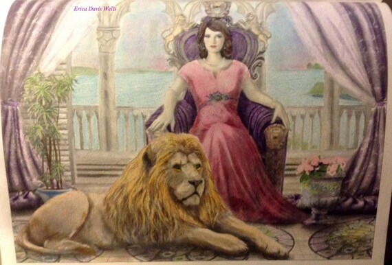Coloring Page Pdf Grayscale Illustration The Queen On A Throne And A Lion Adult Coloring Coloring Page Grayscale Instant Download